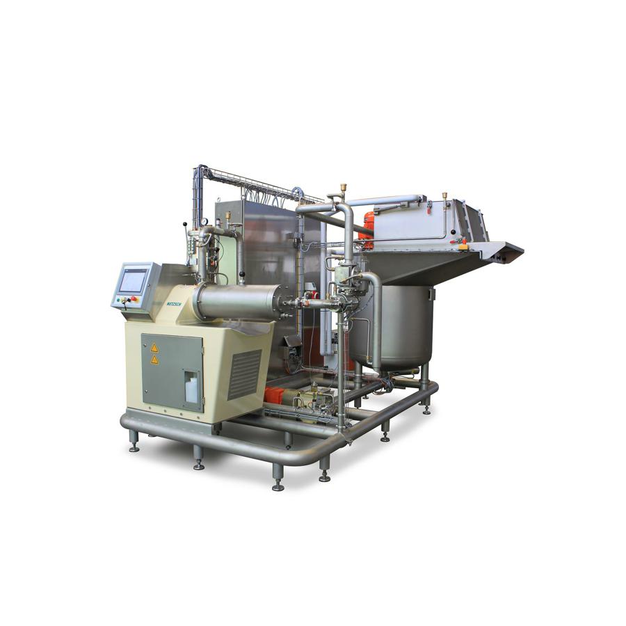 Our line concept Salsa® includes the initial homogenization of the individual components in a mixing tank with a rapidly spinning dispersion tool for product circulation, transfer of the mass to the heatable process tank and the final fine grinding in the MasterRefiner agitator bead mills.