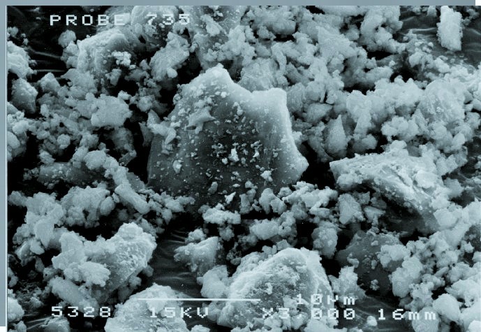 Cristobalite is synthetically produced for industrial purposes from pure quartz in a rotary kiln at a temperature of approx. 1,500°C. A fractured grain surface, a high degree of whiteness and a density reduction to 2.35 g/cm3 is achieved by the calcination. Like quartz, cristobalite is chemically inert and is therefore popular as a filler in a variety of processes and products. Application: emulsion-bound exterior paints and renders, dental impression composites, engineered stone, silicone sealant compounds, anti-blocking additive in PP and PE film, road markings.
